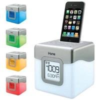 Plays & Charges iPhone/iPod; Translucent Cabinet & Display Changes Color At The Touch Of A Button;Êdual Alarms For Separate Wake Times & Alarm Sources;Êautomatic Or Manual Time Sync To Set Clock Instantly To The Time On iPhone;Ê5 Selectable Cabinet/Display Colorsñblue, Green, Amber, Red, White;Êfour Color Modesñglowing Sequence, Fast Change Sequence (Dimmable With Snooze Bar), Favorite Color (Dimmable With Snooze Bar) & No Color; Four Wake Up Color Modesñdawn, Flash, Glowing Sequence & No Color;Êreson8 Speaker Chamber;Êapp-Friendly Product Allows Wake Up With Free iHome Sleep App, Paid iHome Radio App Or Other Audio Apps