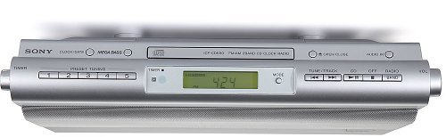 Sony Space Saver Under the Cabinet Kitchen Stereo Sound System with AM / FM Digital Tuner Radio, CD Player, 15 Station Presets, Bass Reflex Sound, LCD Backlit Display Clock, Magnetic Remote Control, Cooking Timer, Built-In AUX Cable & Cradle for any iPod, Product By Sony (Price on 25,Sep 2012) *** Prices of the product may not be the latest update. You can check current prices at this button. |